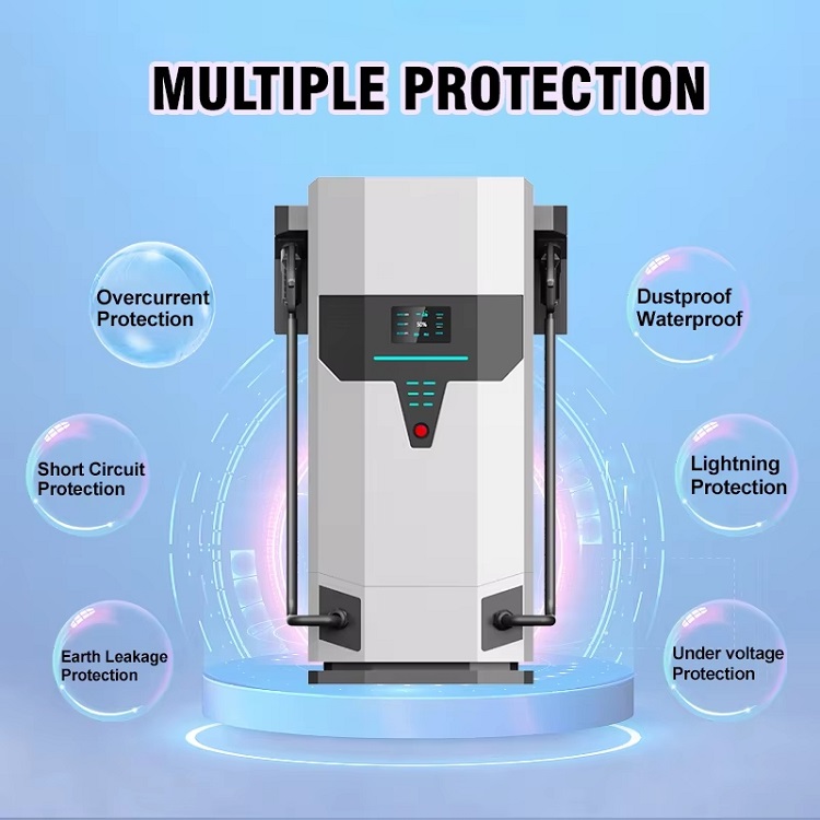 The 60KW CCS1 Double Charging Guns DC Fast Charging Points deliver lightning-fast charging speeds for electric vehicles. With dual CCS1 connectors, this charger can power two EVs simultaneously, making it a perfect fit for commercial charging stations and fleet operations.